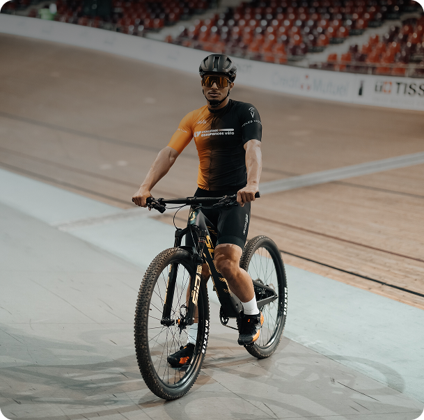 "La vitesse, c'est mon métier. La sécurité, c'est celui d'Assurancesvélo.com. Un partenaire fiable sur la piste comme en dehors."